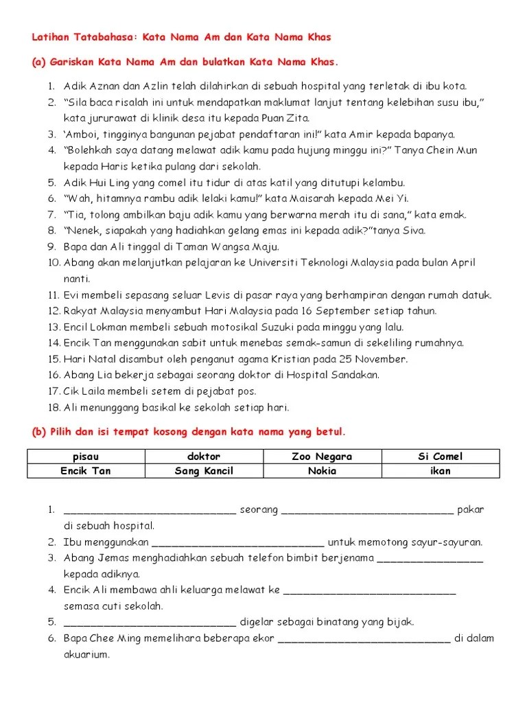 Bm 5 latihan 4 kata nama am dan khas draft. Bahasa melayu tatabahasa isnin, 10 disember 2012 kata nama.